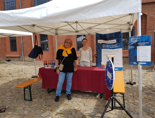 Wenn das Barmbeker Hoffest stattfindet, scheint die Sonne und alle sind glücklich. Danke, liebe Zinnschmelze, dass Ihr jedes Jahr vielen-vielen Kindern und Erwachsenen diese Freude ermöglicht. Für uns ist das Hoffest ein fester Bestandteil im Jahresablauf, bei dem wir stets zahlreiche Gespräche mit interessierten Ehrenamtlichen und Teilnehmer*innen führen können. Ein echter Sonnenstrahl im Jahreskalender!