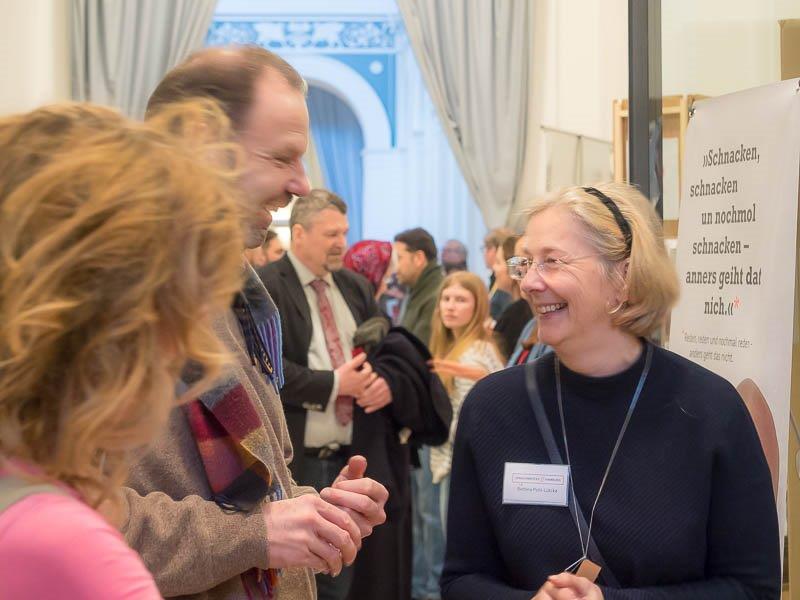 Wer interessiert ist, dazu beizutragen, dass in Hamburg noch mehr zugewanderte und geflüchtete Menschen ihre Deutschkenntnisse üben und somit in ihrem Lebensalltag nutzen können, kann sich gerne bei uns im Büro unter 040-2847 8998 oder per E-Mail an kontakt@sprachbruecke-hamburg.de melden. Wir bieten vielfältige Mitmachmöglichkeiten in der Gesprächsleitung sowie in unseren Projektteams, z.B. im Team Büro.